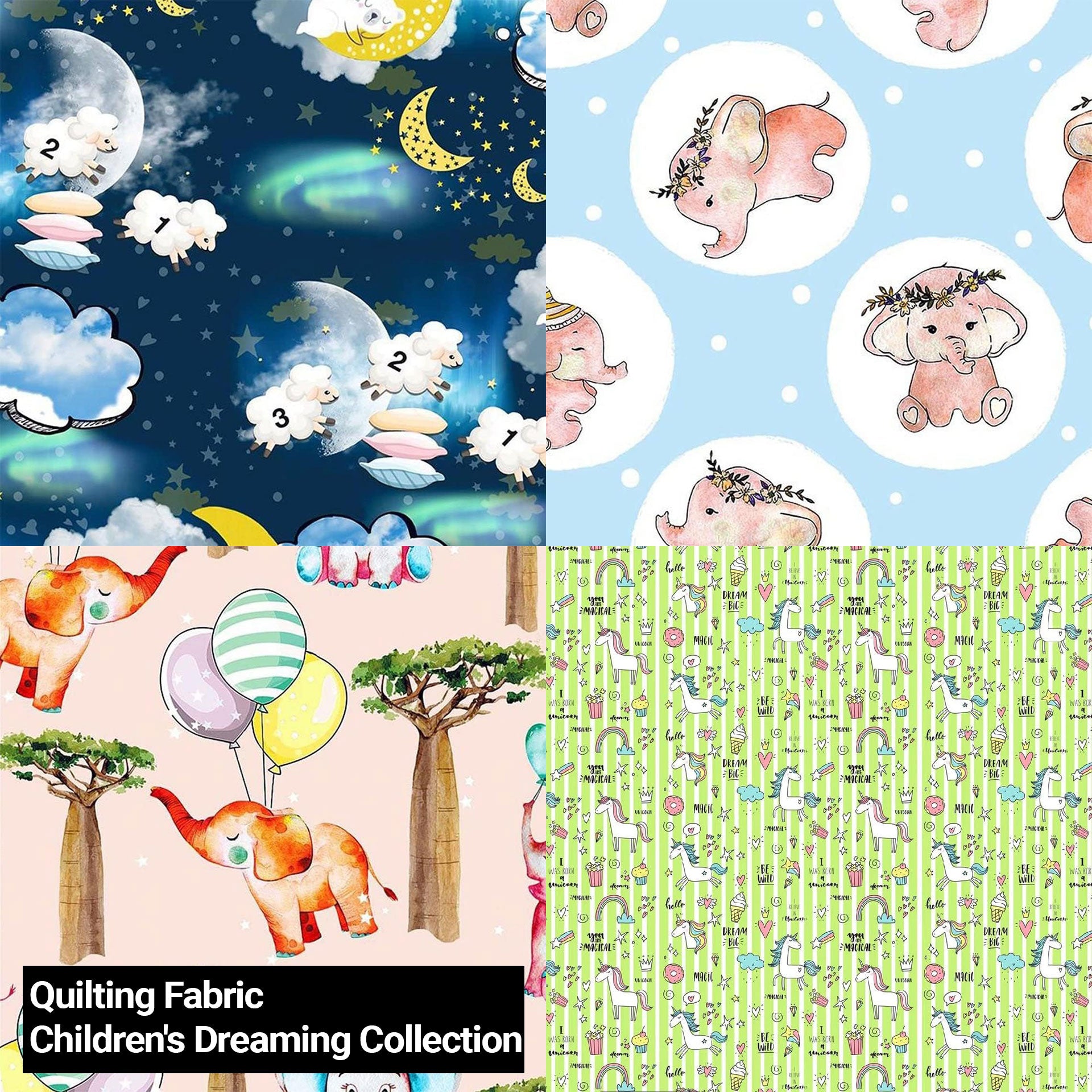 44" Wide 100% Cotton No Stretch Quilting Fabric-Printed Designs for Sewing, Clothing, Crafts, Accessories, Home Decor, and DIY Projects (Quilting Fabric- Children's Dreaming Collection)