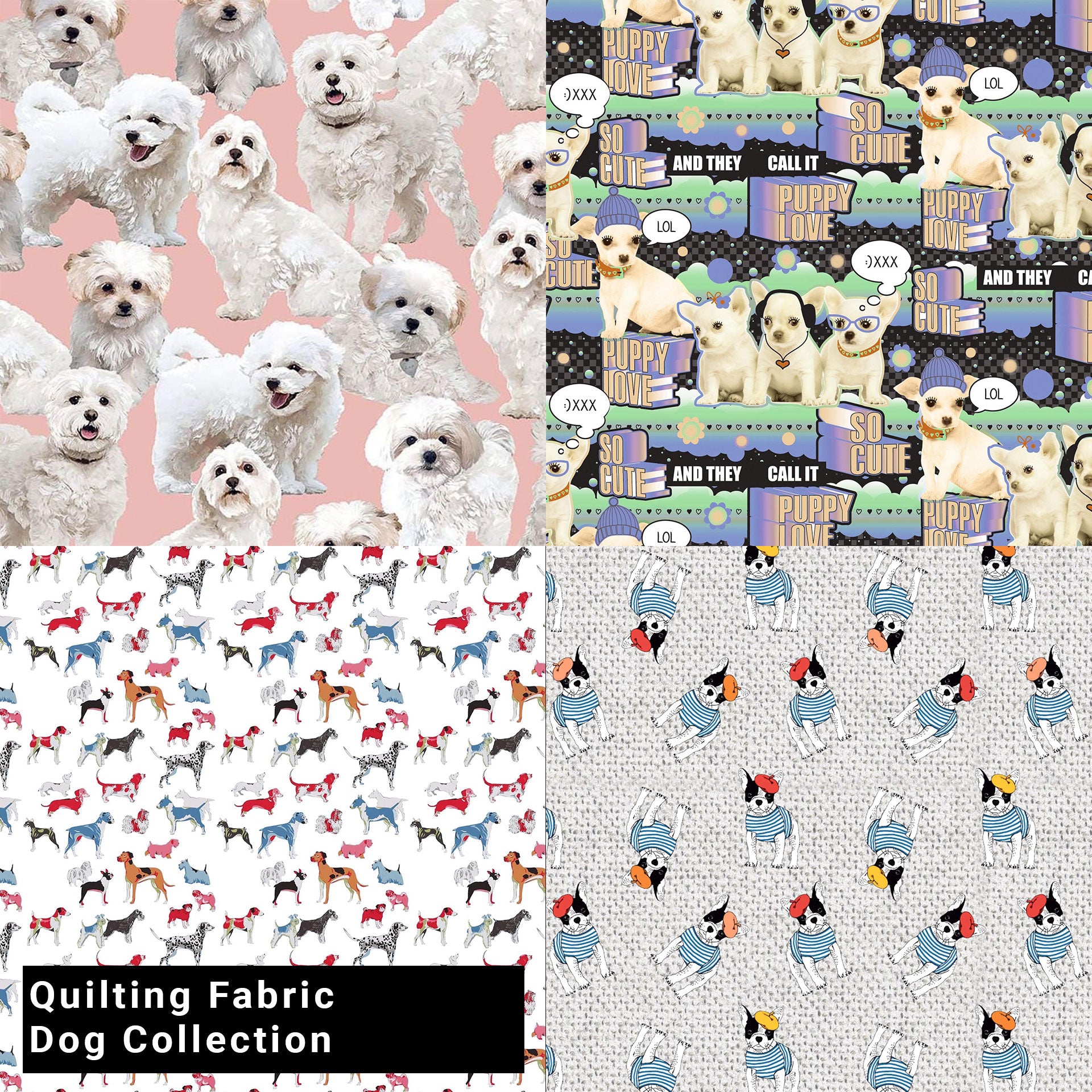 44" Wide 100% Cotton No Stretch Quilting Fabric-Printed Designs for Sewing, Clothing, Crafts, Accessories, Home Decor, and DIY Projects (Quilting Fabric- Dog Collection)