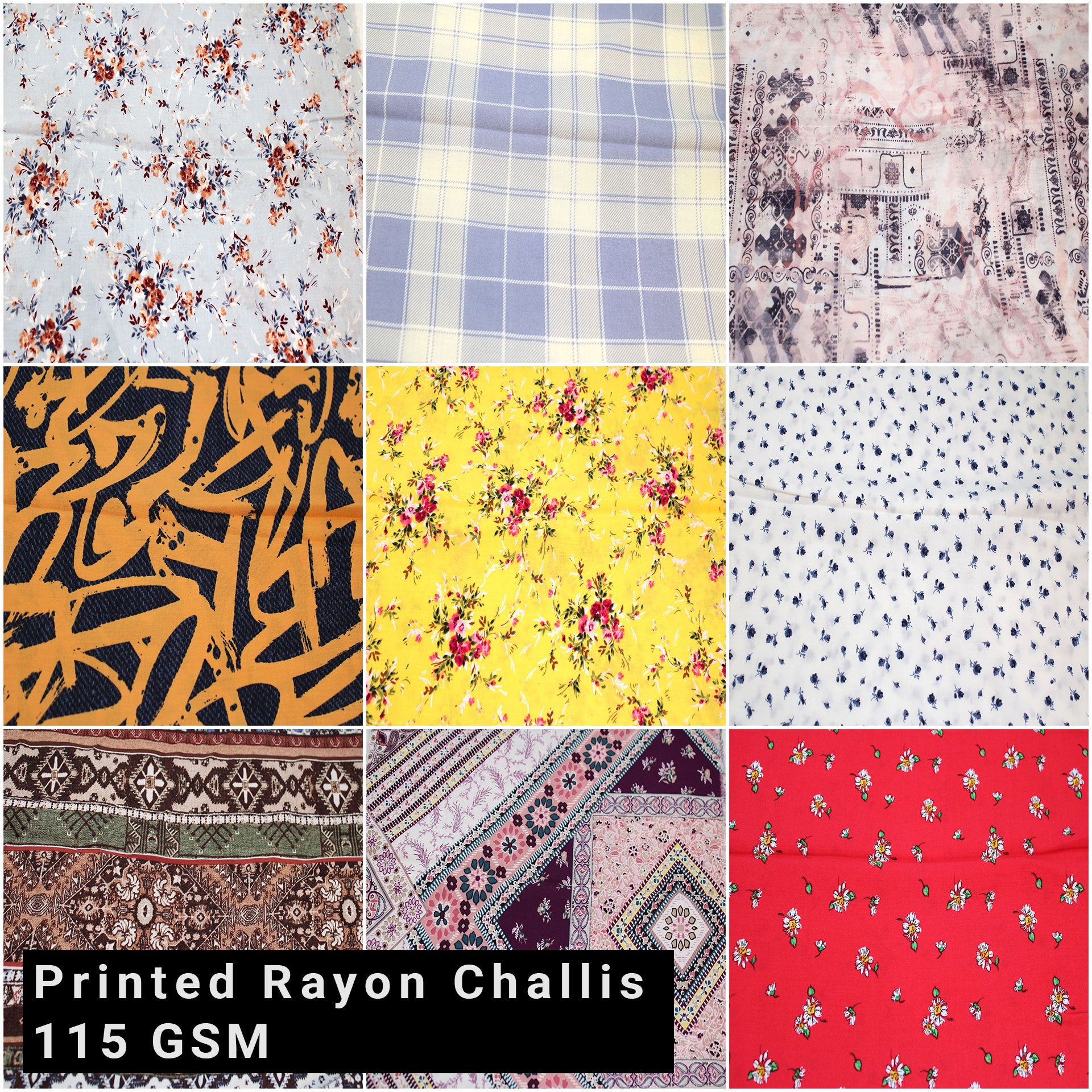 - This 100% rayon challis fabric weighs 155 GSM, making it lightweight. It is thin and breathable, with a soft, fluid drape. While it provides good coverage, it may be slightly sheer in lighter colors. Its lightweight nature is ideal for warm-weather garments, flowy dresses, and delicate home décor projects.