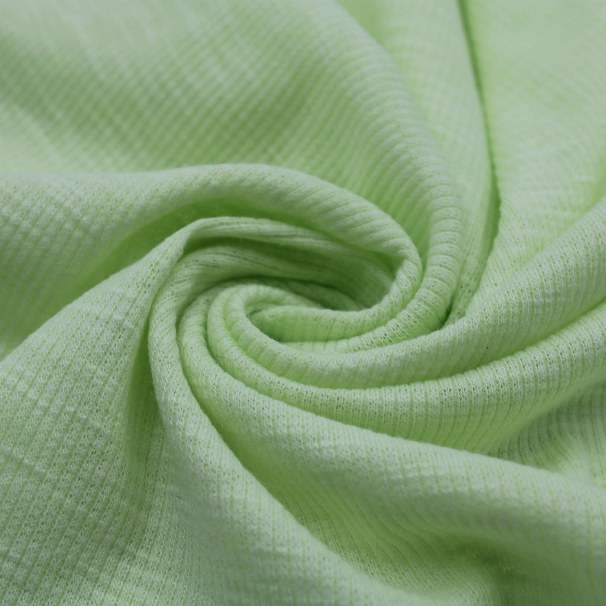 This 55" wide Solid Color Polyester Cotton Spandex 2x1 Rib Knit Fabric, with a weight of 170 GSM, features a textured 4x2 rib knit pattern that provides a distinctive vertical line effect and exceptional stretch. The blend of polyester, cotton, and spandex ensures a comfortable fit, combining the durability and wrinkle resistance of polyester with the softness of cotton and the elasticity of spandex. This fabric is ideal for creating a variety of garments including fitted tops, casual tees, comfortable loungewear, and stretchable skirts. It is also suitable for crafting athletic wear, cozy cardigans, and stylish dresses, offering both comfort and a polished look.