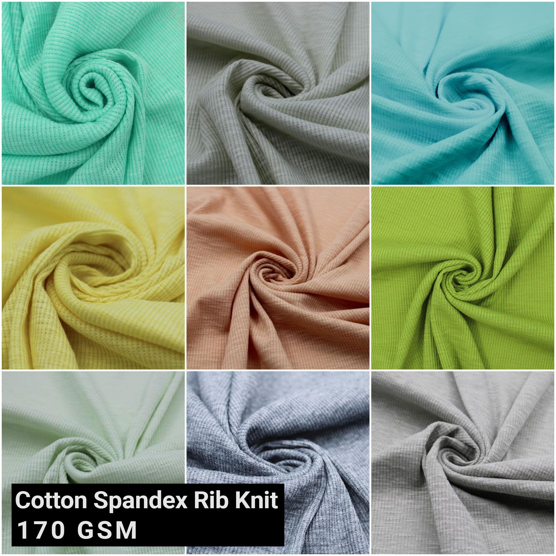 55" Width Solid Color Polyester Cotton Spandex 2X1 Rib Knit Fabric by the Yard - 170 GSM - (SKU-792)