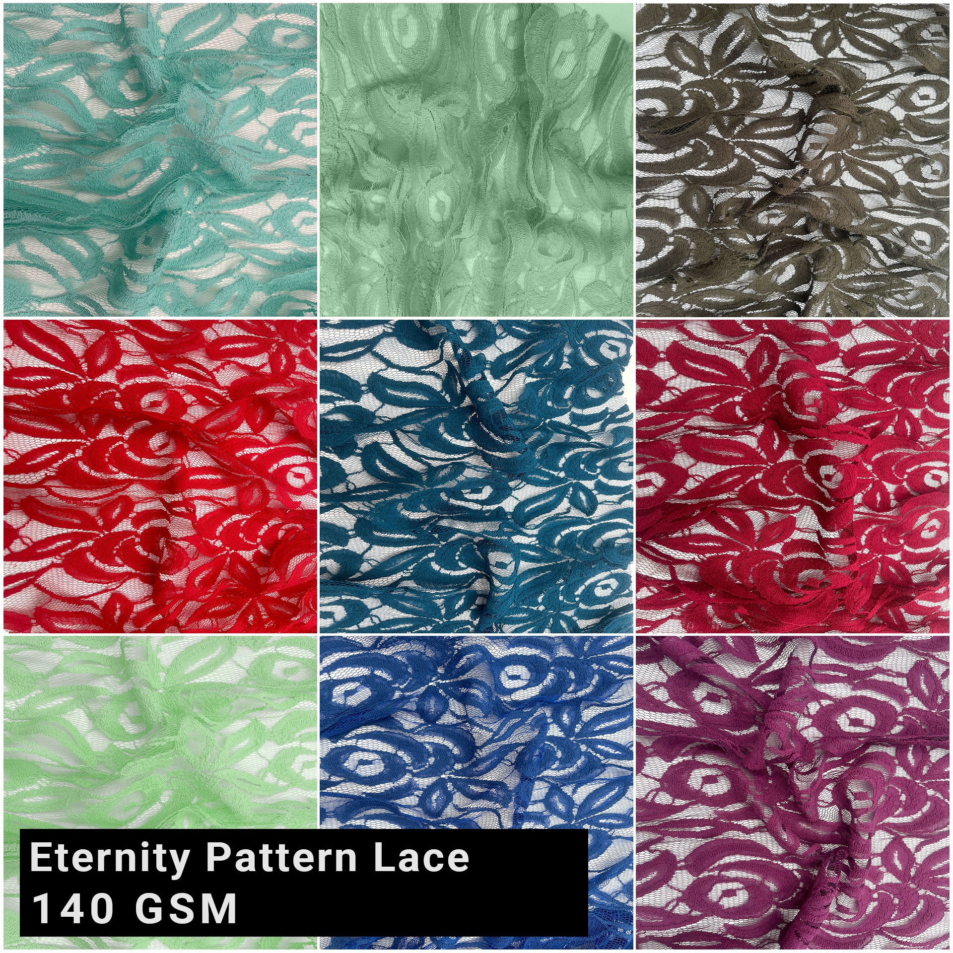 Expertly crafted from a blend of cotton and nylon, this 58" high-quality lace fabric features a Eternity pattern that adds a touch of elegance to any project. With a weight of 140gsm, it offers both durability and a delicate feel. Perfect for creating stylish and sophisticated designs.