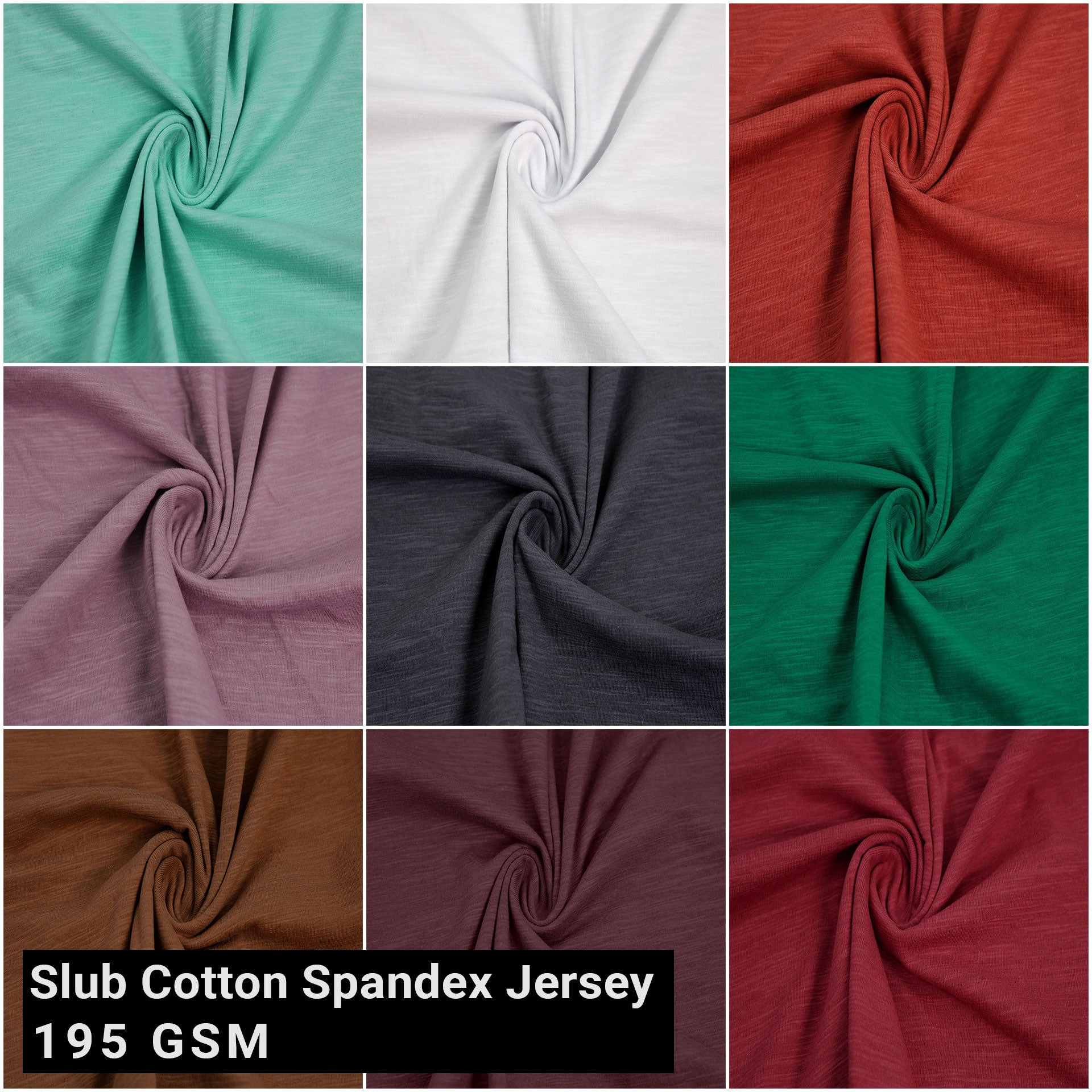 60" Wide Slub Cotton Spandex Jersey Knit Fabric by the Yard - (195 GSM) Medium Weight, 2-Way Stretch, Breathable - Apparel, Casual, Activewear, Layering & Craft - (SKU-781)