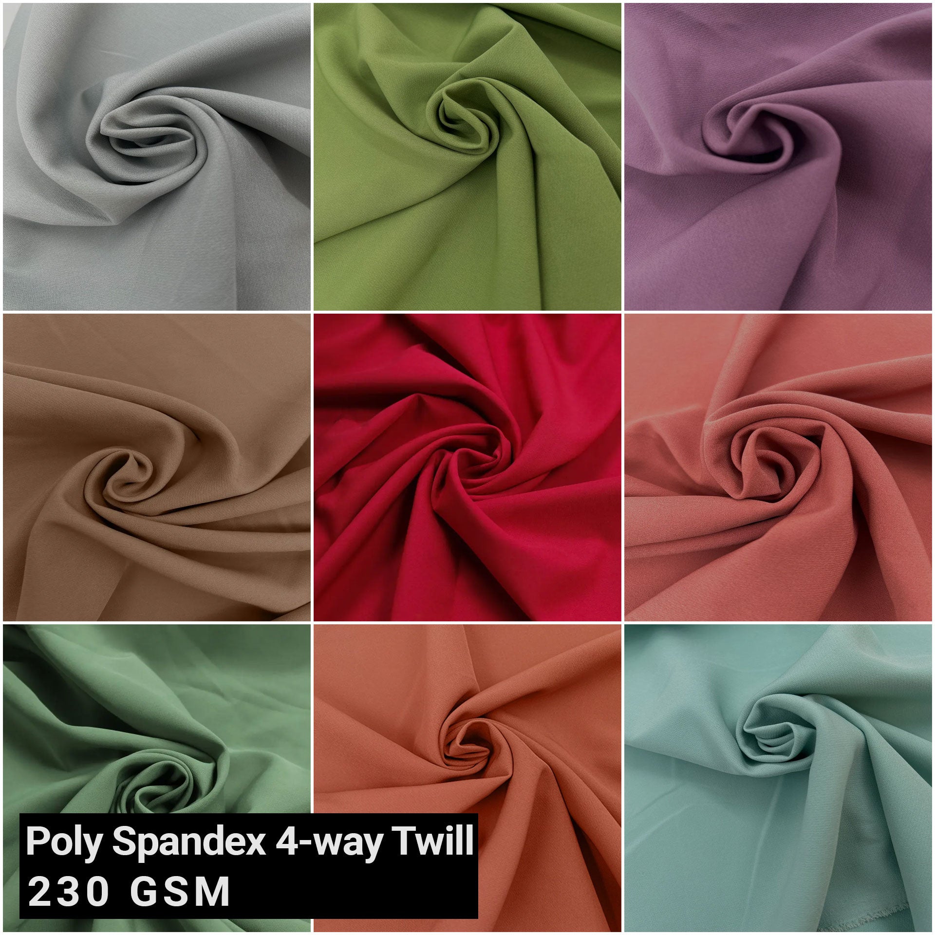Multicolor Clothing, Sewing, and Craft Projects Fabric by the Yard - 58" Polyester Spandex 4-way Twill Stretch Knit - 230 GSM - (SKU 597)