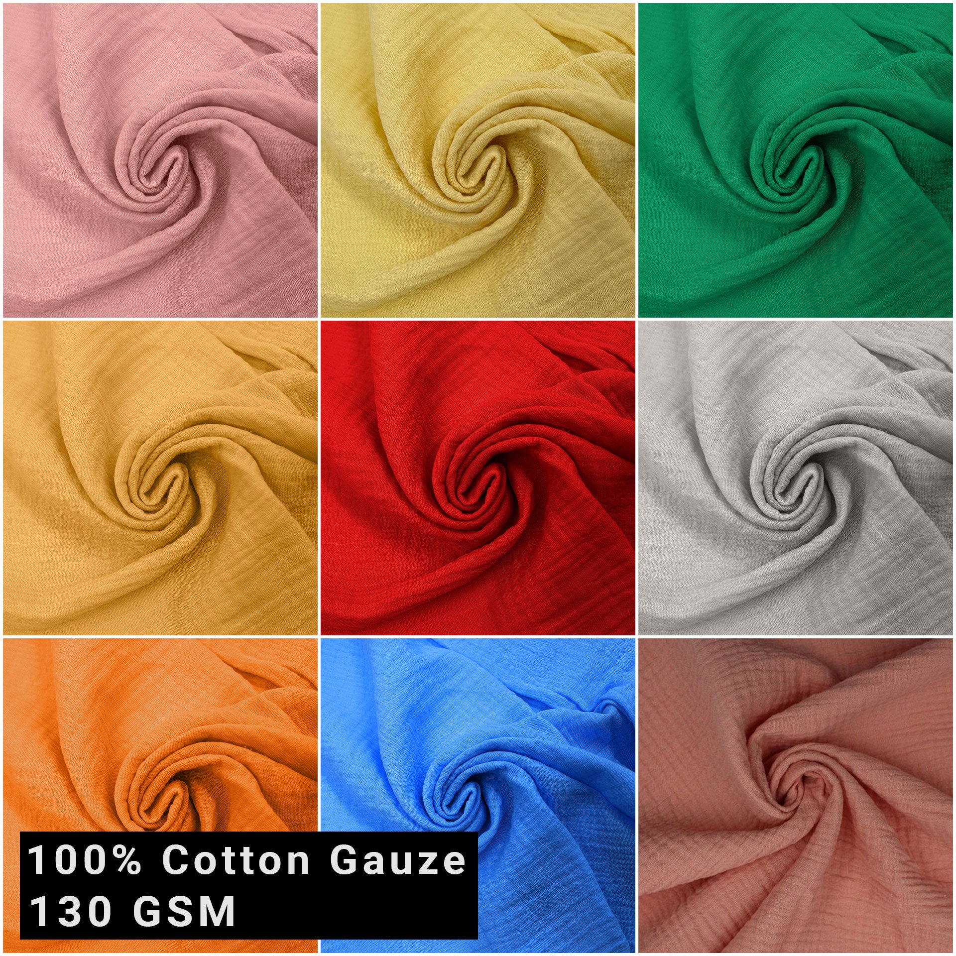 Multicolor Apparel, Clothing, Headbands, Decorations, Drapery & DIY Fabric by the Yard - 130 GSM,55" Wide 100% Cotton Gauze, Lightweight, 2-Way Stretch, Soft & Breathable - SKU 795